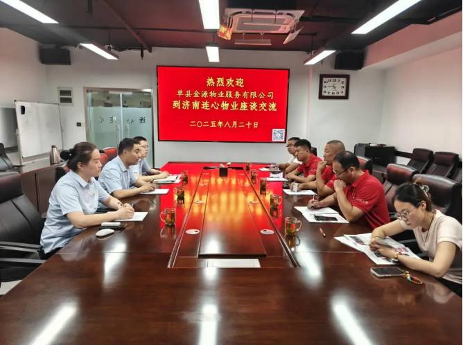 2025年8月20日下午,單縣金源物業(yè)服務(wù)有限公司經(jīng)理時(shí)海東等一行5人到濟南連心物業(yè)有限公司進(jìn)行工作交流。連心物業(yè)黨支部副書(shū)記、總經(jīng)理曹立等參加此次交流接待活動(dòng)。